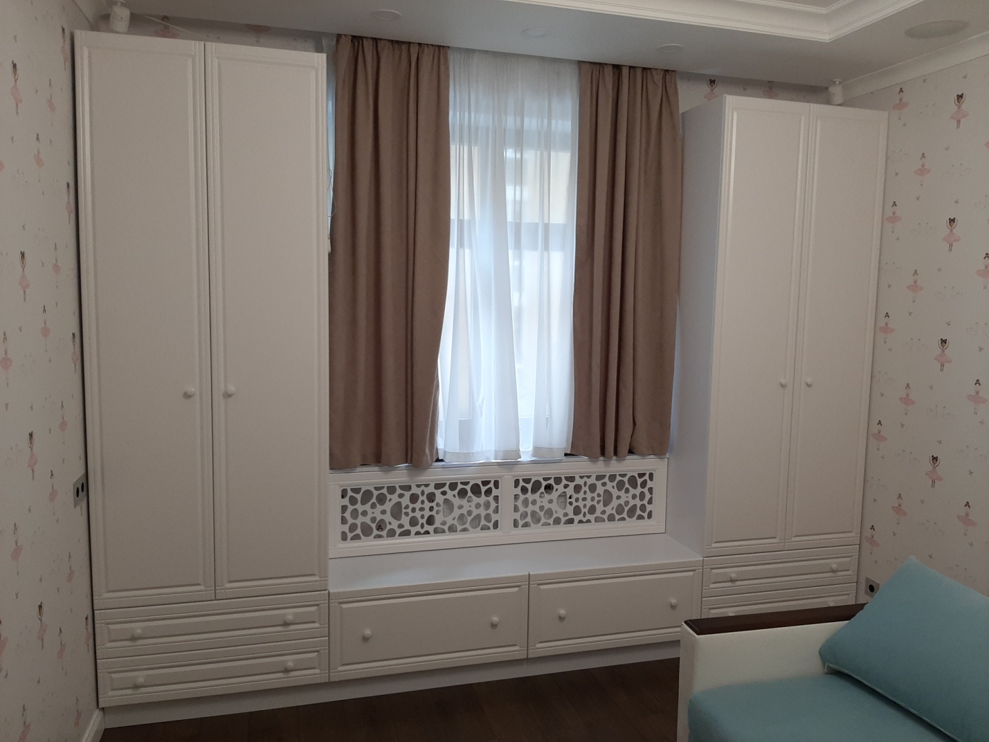 Фурнітура GTV, BLUM, MULLER. Для того, щоб прорахувати вартість меблів для дитячої та зробити проект-макет Вам необхідно викликати нашого замірника-дизайнера додому. Замірник приїжджає із повним набором зразків матеріалів.