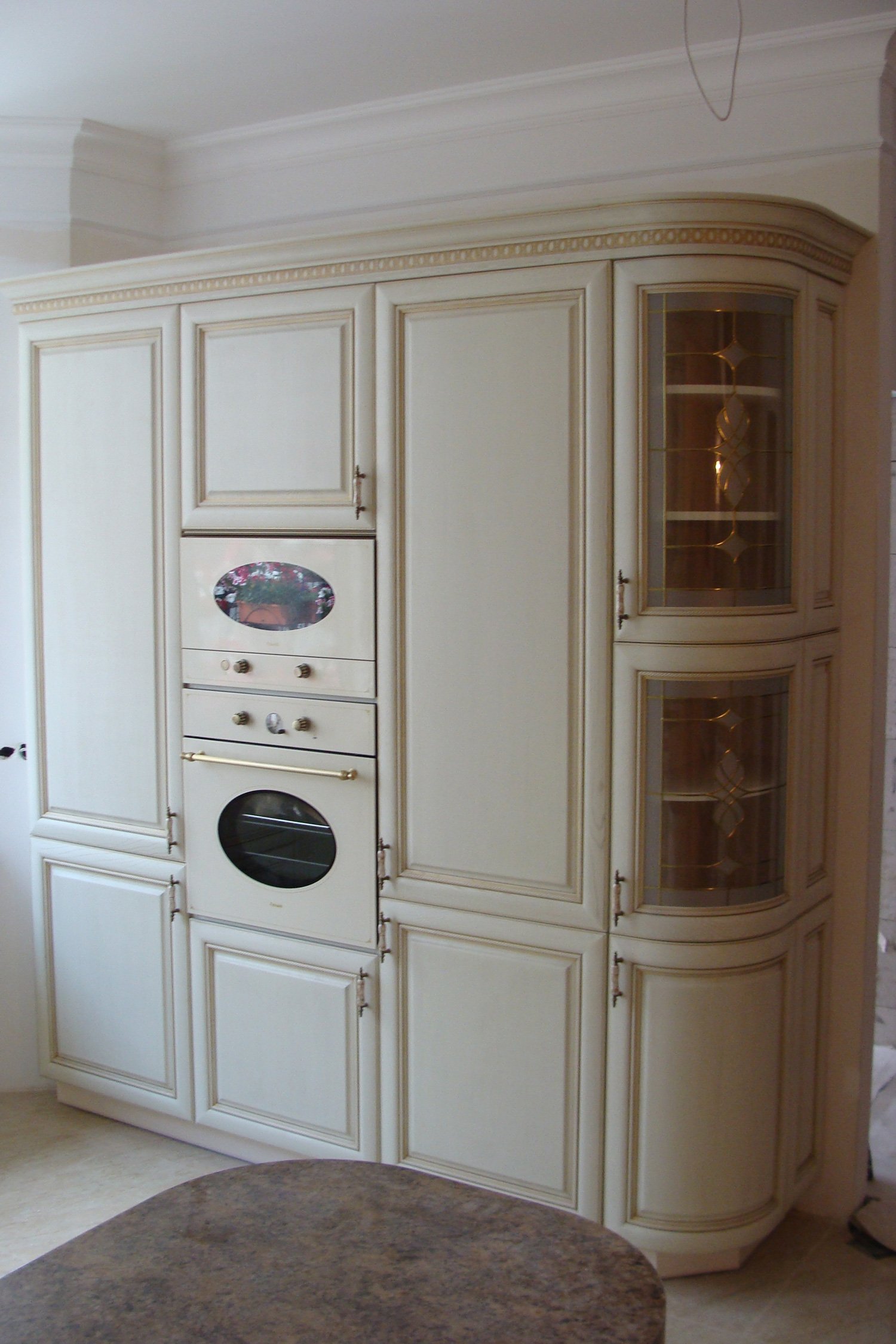 Фасад: масив ясена 23мм, фарбування РАЛ 9001+ патина золото, (Україна).