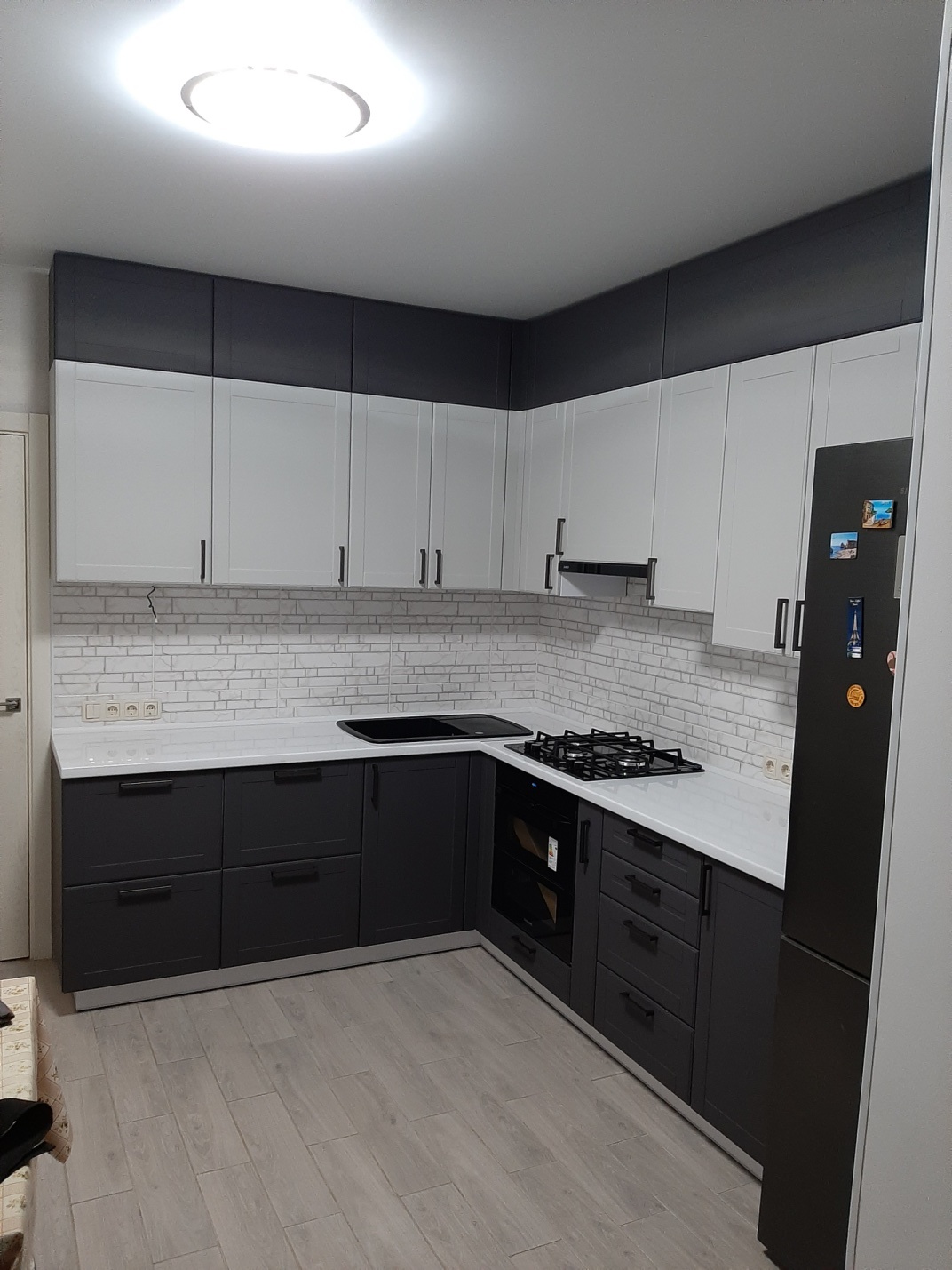Для фасадів кухні використовується ДСП, МДФ плівка, МДФ фарбування. Можливі варіанти фасадів з фрезеруванням та без.