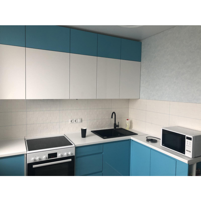 Кухня: МДФ фарба глянець, RAL 9003+5012 ( 3,0 м.п )