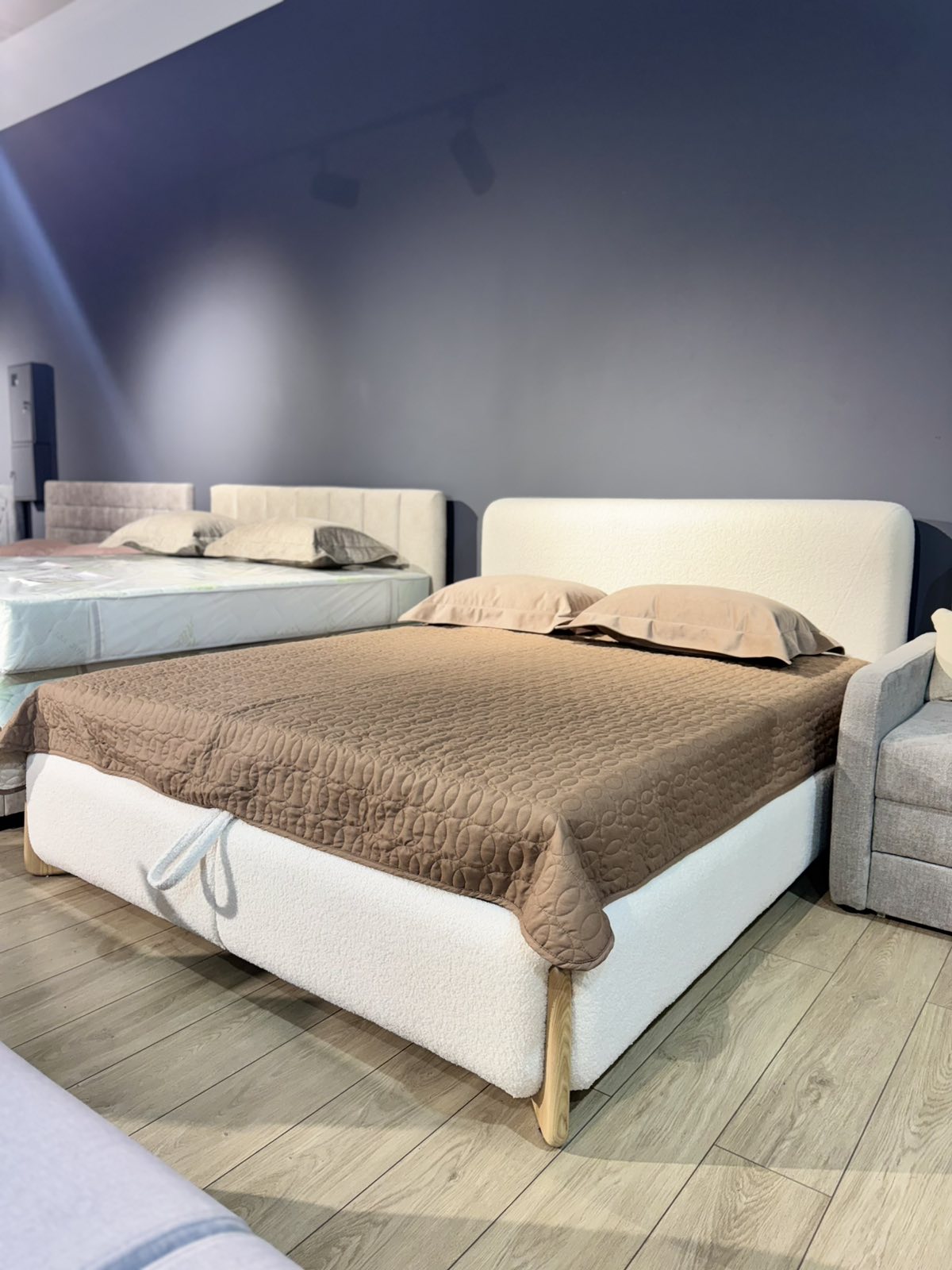 Ліжко Сієна — естетична та стильна модель з текстильною оббивкою й ніжками з натурального дерева. Воно створює атмосферу тепла, а м’яке узголів’я забезпечує комфорт під час відпочинку чи читання. Ідеальний вибір для сучасних інтер’єрів.