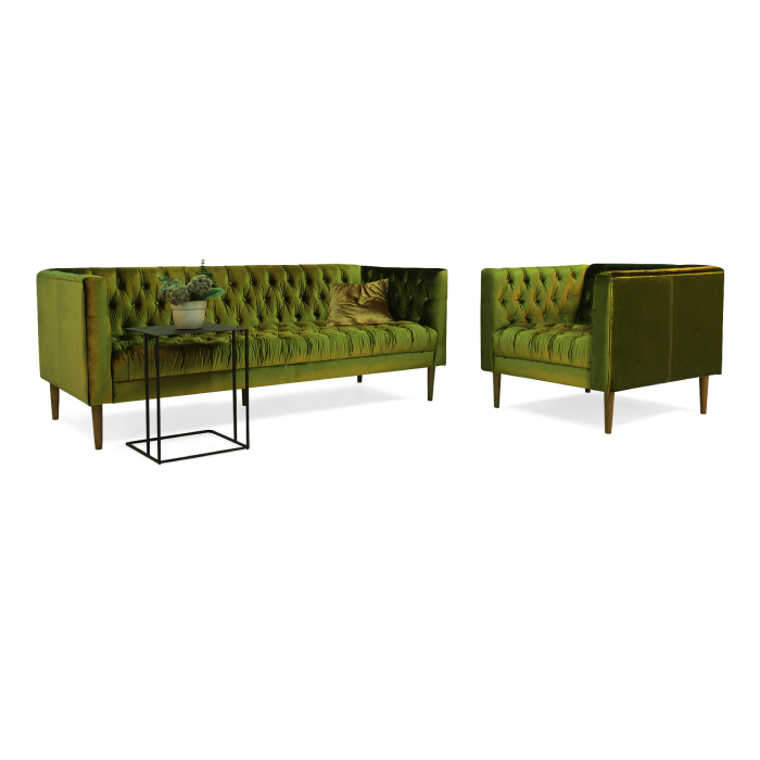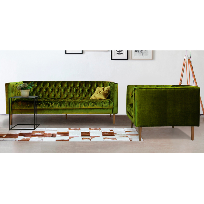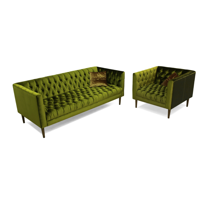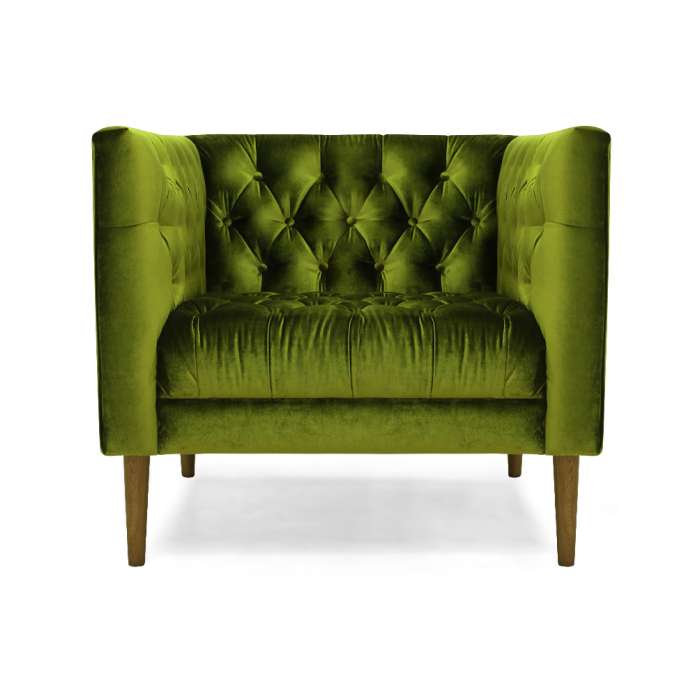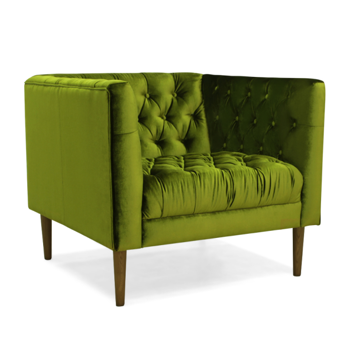 Декоративні втяжки з ґудзиками та складки на спинці та підлокітниках моделі утворюють рельєфні поверхні.