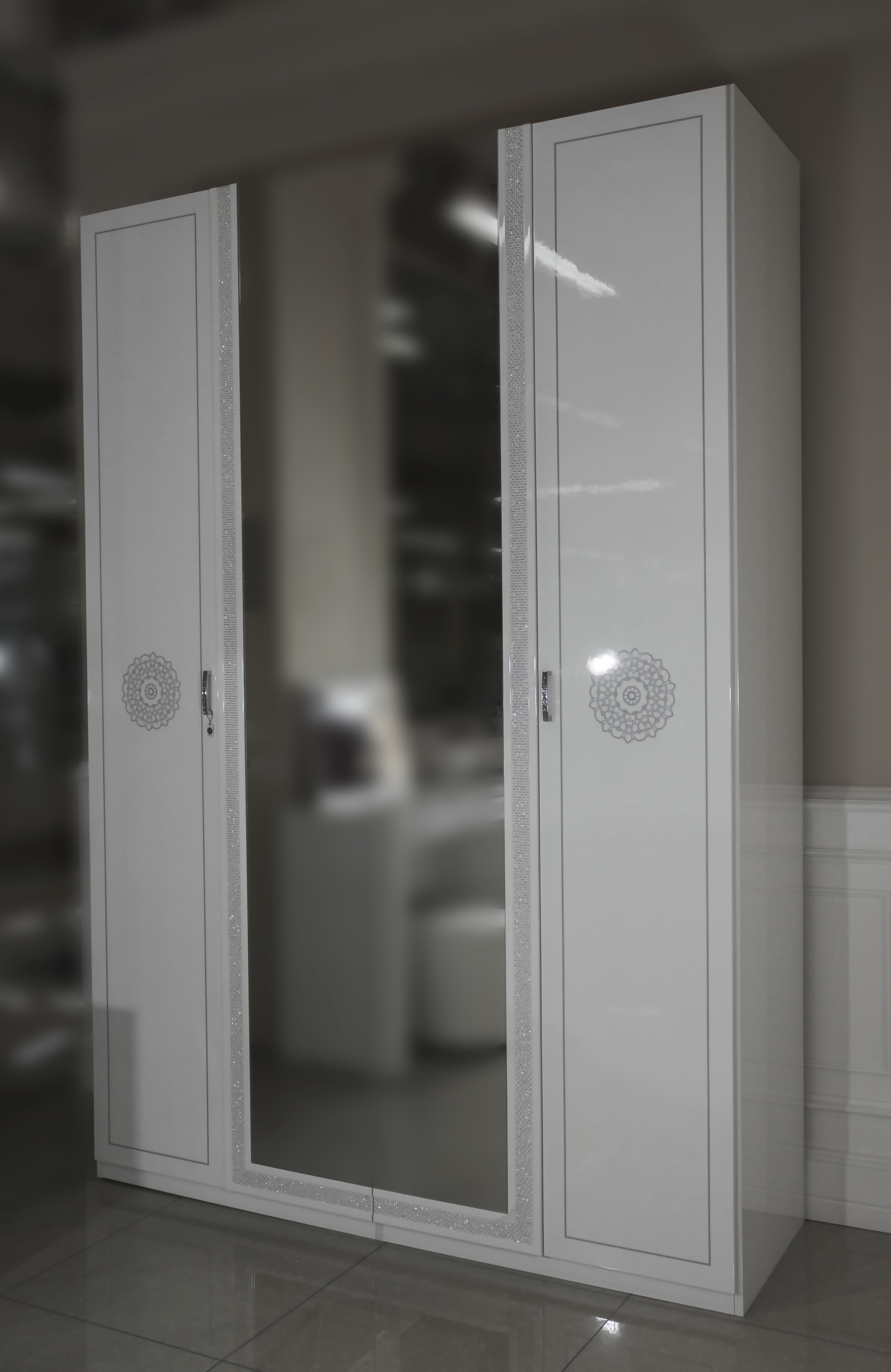Уточнити вартість Шкаф 4-х дверной174x55x250h2 двери с декорами2 двери - зеркало4 полки1 бокс с тремя ящиками для белья Категорія: Шафи та комоди Магазин: kaShmir Зателефонуйте нам: +38 099 777 40 89