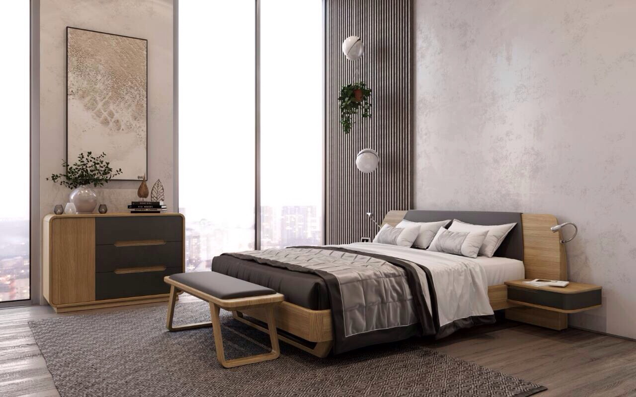 Оригінальна колекція дубових меблів з легким відтінком лофта української фабрики для спальні, вітальні та їдальні, кабінету.