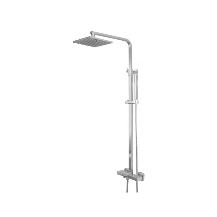 Душова стійка Riva. Комплектація: душова головка, душ з використанням технології Calc Stop, елегантний ручний душ, душова латунна штанга з регулюванням по висоті, рукоятка змішувача. Гарантія 2 роки.